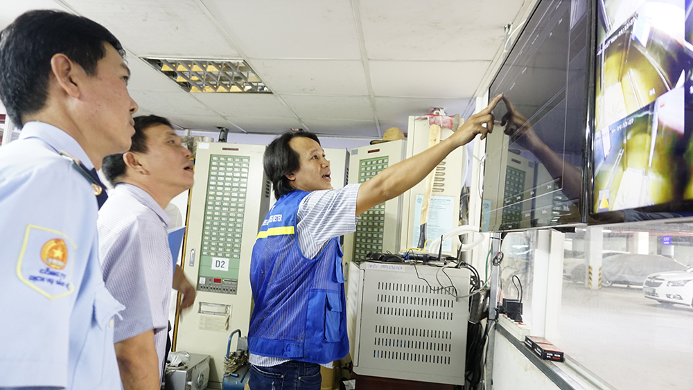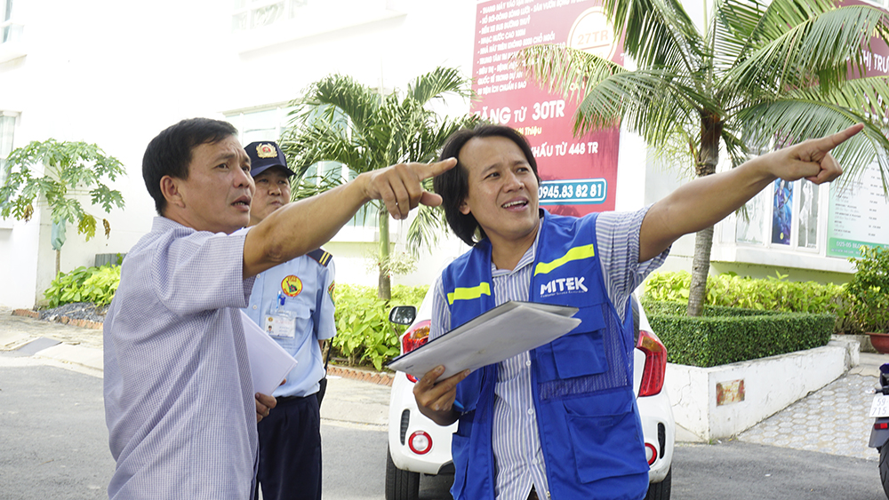 Nhân viên MITEK hướng dẫn ban quản lý chung cư sử dụng hệ thống camera giám sát. Ảnh: Nguyên Phương – MITEK
