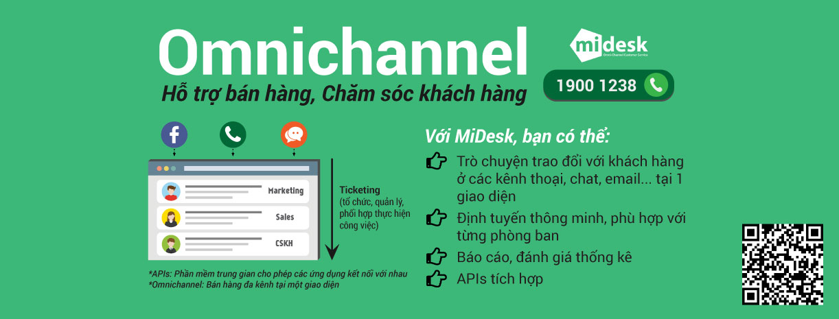 Hay giải pháp hỗ trợ bán hàng Omnichannel MiDesk, cho phép kiểm soát tương tác giữa khách hàng với doanh nghiệp một cách toàn diện.