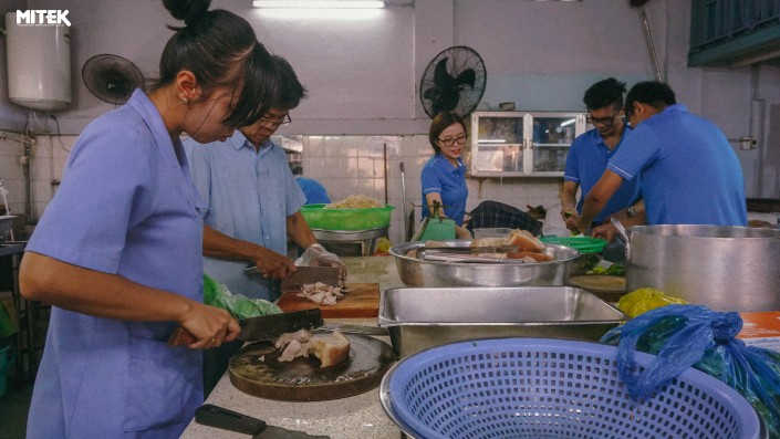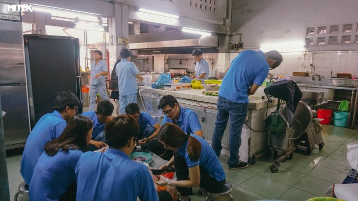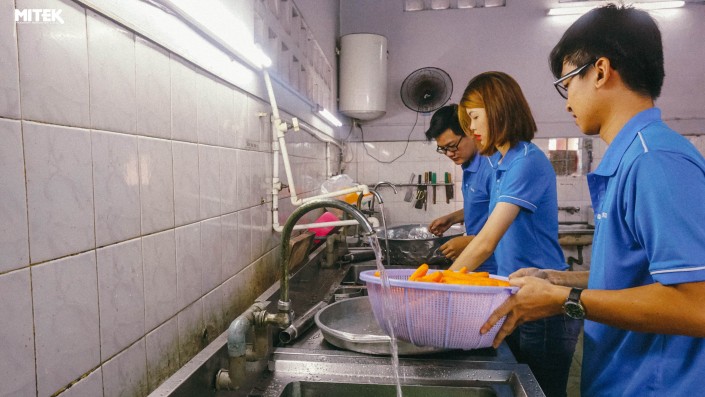 Sáng thứ Bảy ngày 16/06, “biệt đội” MITEK đã có mặt từ rất sớm để hỗ trợ các cô chú tại Trại chuẩn bị thức ăn cho các em nhỏ…