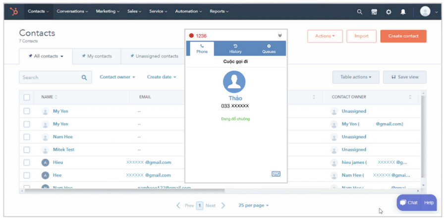 Dữ liệu từ cuộc gọi và tương tác với khách hàng có thể tự động được nhập và cập nhật trong HubSpot CRM. Điều này giúp doanh nghiệp duyệt qua dữ liệu khách hàng dễ dàng hơn, theo dõi tiến trình chăm sóc khách hàng và tạo kế hoạch tiếp thị mục tiêu.