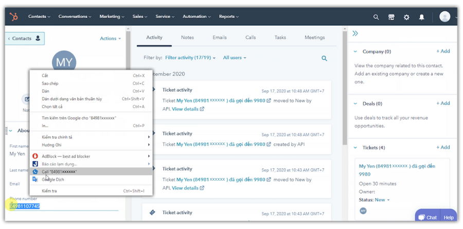 Tìm hiểu thêm: Giải pháp tổng đài Call Center MiCall tích hợp HubSpot CRM.