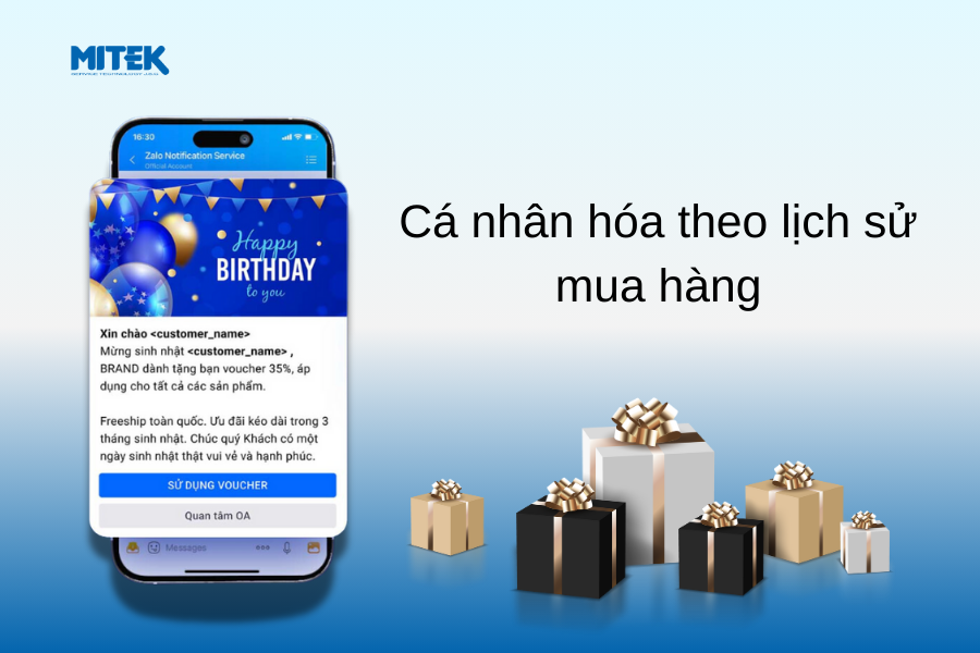 Chỉ cần dựa trên lịch sử mua hàng, người dùng sẽ nhận được thông tin cá nhân hóa, từ những sản phẩm phù hợp đến các ưu đãi đặc biệt mà họ có thể quan tâm hoặc những lời chúc mừng vào các dịp đặc biệt như sinh nhật, kỷ niệm thành lập, tri ân,… .