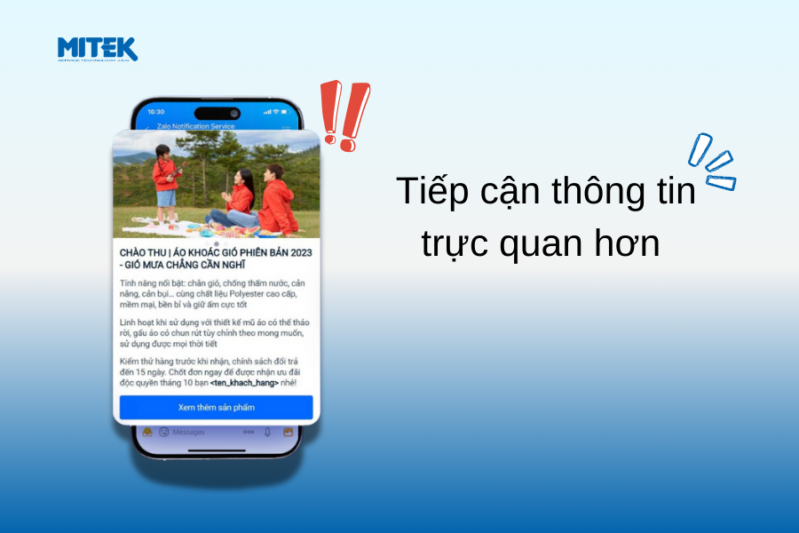 Zalo ZNS (Zalo Notification Service) mang lại nhiều lợi ích cho người dùng cuối, bao gồm: