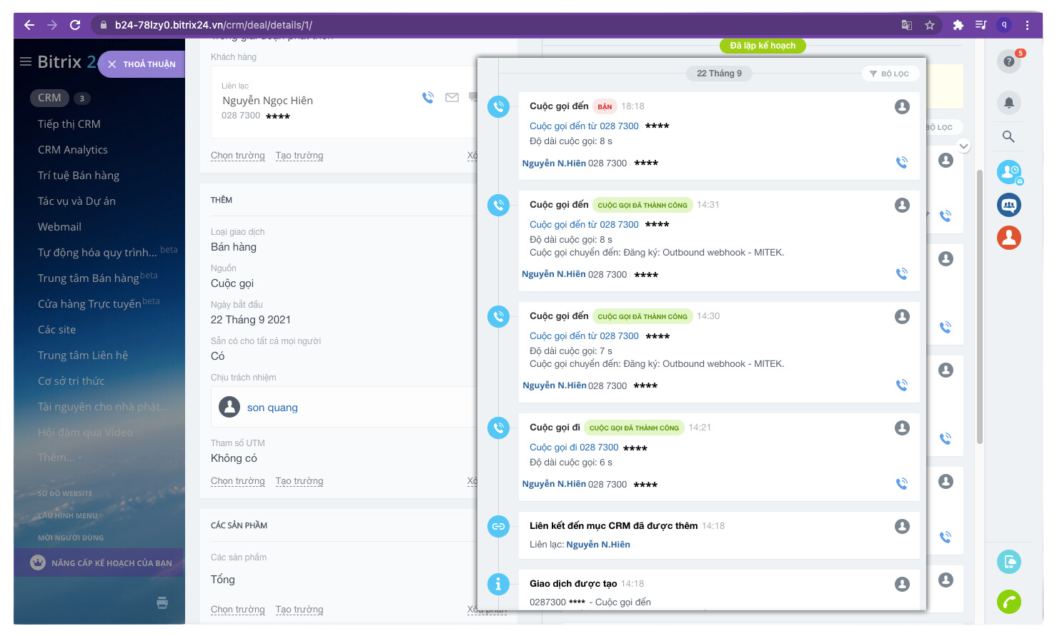 3. Click to Call trực tiếp trên Bitrix24: