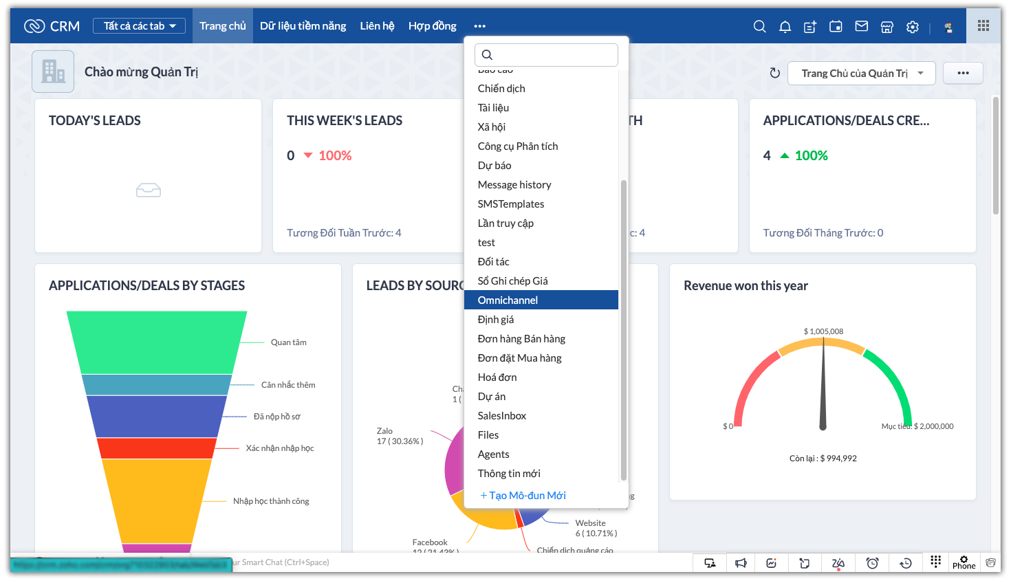 1. Cửa sổ OmniChannel quản lý kênh Facebook, Zalo OA: